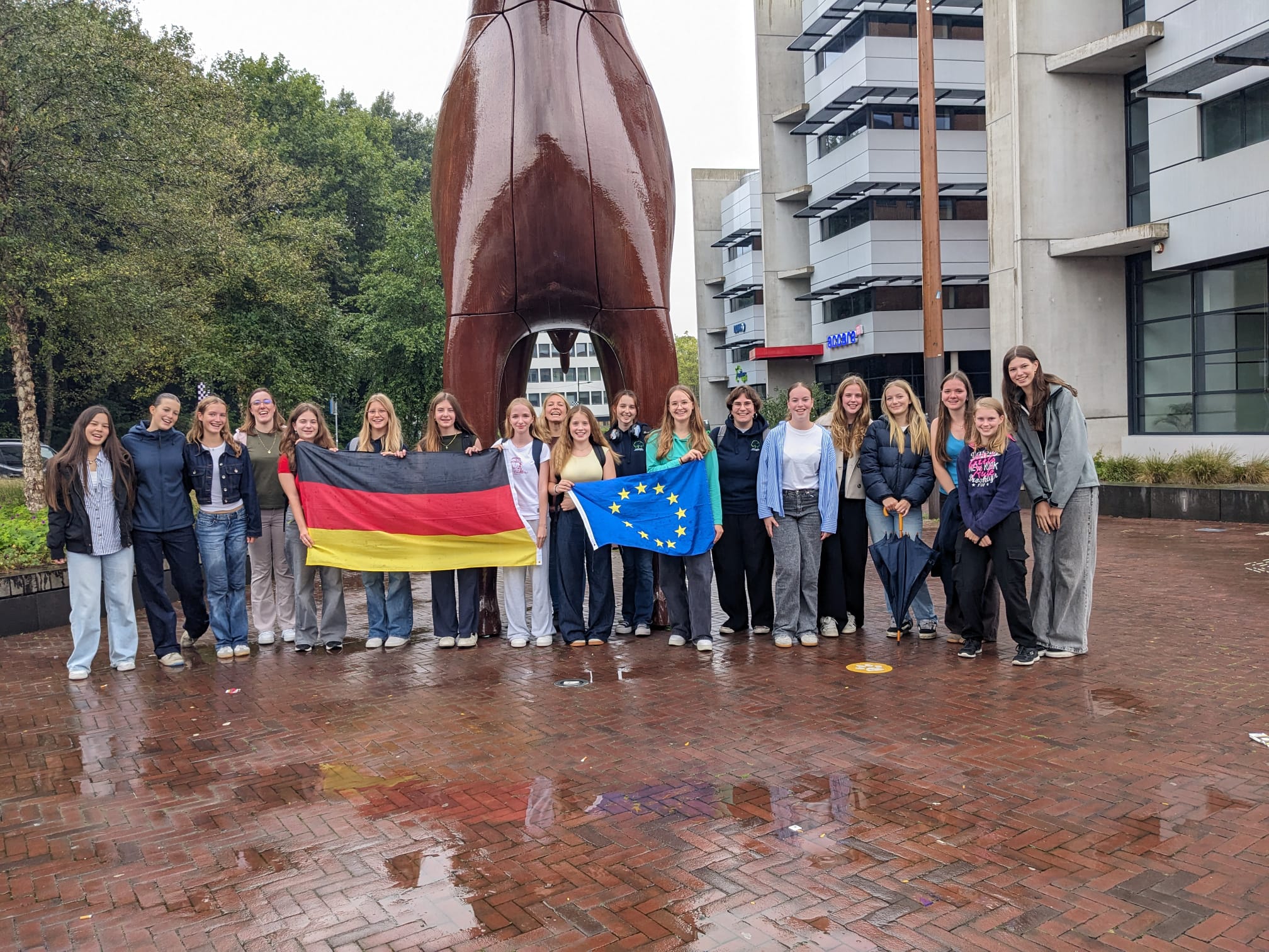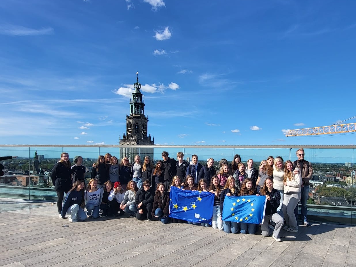 Neun Schülerinnen aus dem Jahrgang 9 und 10 haben eine Woche in den Niederlanden verbracht, um dort mit niederländischen und litauischen Schüler*innen an dem Projekt „Beyond plastic – Pathway to a sustainable tomorrow“zu arbeiten. Trotz der erschwerten Bedingungen (aufgrund der zerstörten Friesenbrücke ging es mit dem SEV von Leer nach Groningen), verlief die Anreise per Bahn und Bus erfreulicherweise unproblematisch. Begleitet wurden die Schülerinnen, die während des Aufenthaltes in Gastfamilien untergebracht waren, durch die Lehrkräfte Frau Holtmann und Frau Rauch.