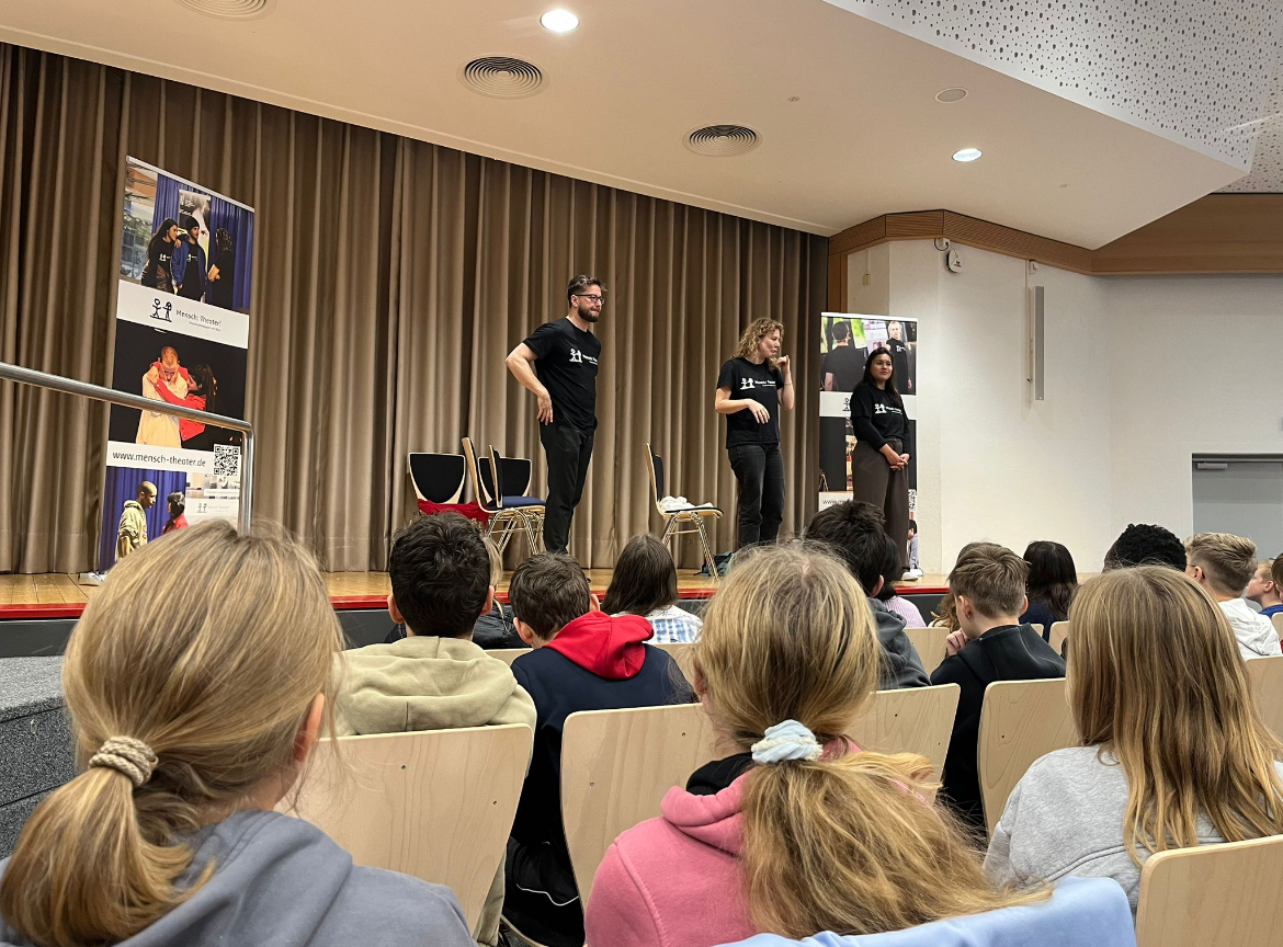 Am Freitag, den 14.11.2025 durfte der siebte Jahrgang an einem interaktiven Theater in der Agora teilnehmen, welches von drei Schauspielern namens Naemi Thoma, Peter Volksdorf und Bernadette Schlotterbohm aufgeführt wurde.