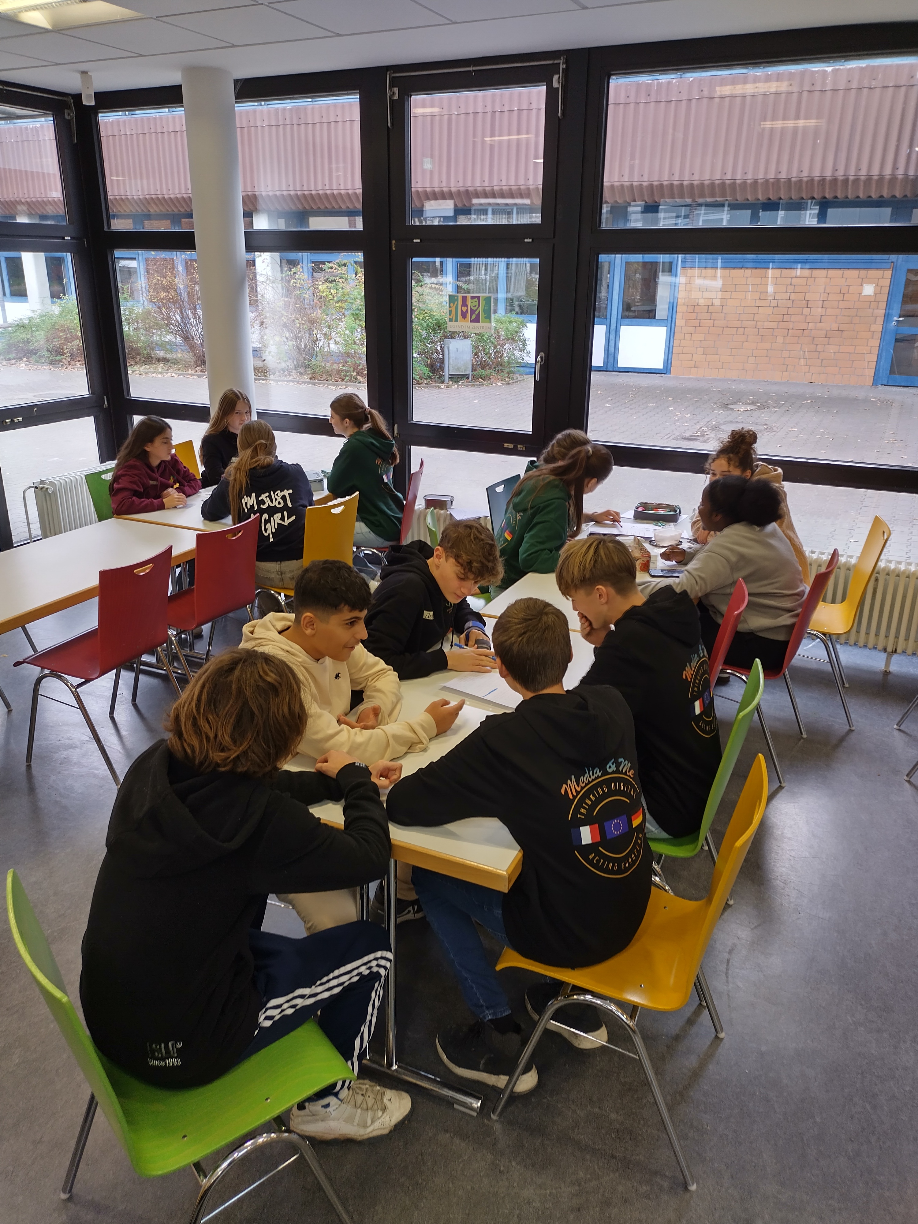 Der Donnerstag startete offiziell mit einer Begrüßung durch unseren stellvertretenden Schulleiter Herrn Raudszus. Anschließend standen Kennenlernaktivitäten auf dem Programm: Die Schülerinnen und Schüler stellten sich vor, indem sie jeweils vier Emojis auswählten, die zu ihrer Persönlichkeit passen. Dies half dabei, schnell ins Gespräch zu kommen und erste Gemeinsamkeiten zu entdecken.
