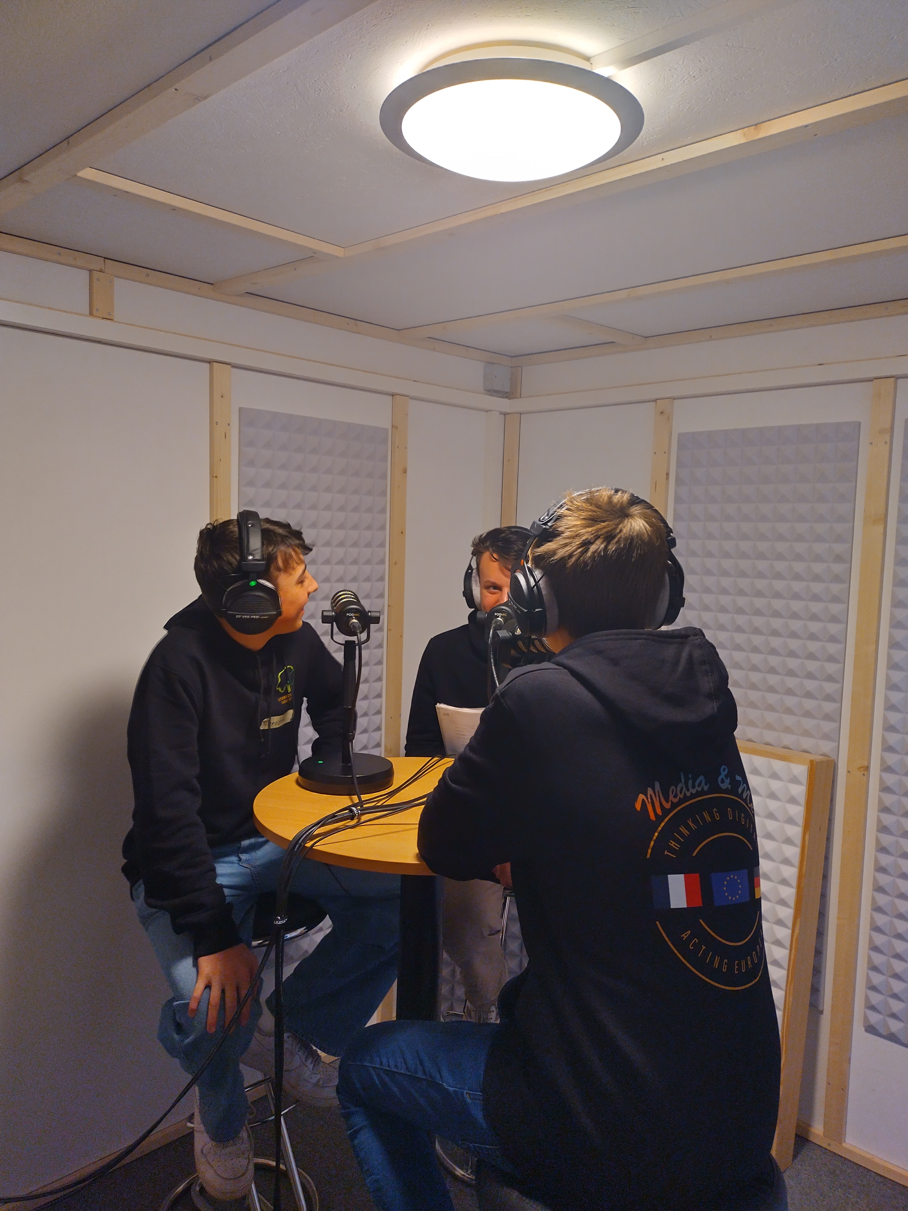 Teil 2 wurde dann praktisch – im schuleigenen Podcast-Studio produzierten die Jugendlichen ihre ersten eigenen kleinen Podcasts. Dabei konnten sie ihre Ideen kreativ umsetzen und gleichzeitig einen Einblick in moderne Medienproduktion gewinnen.