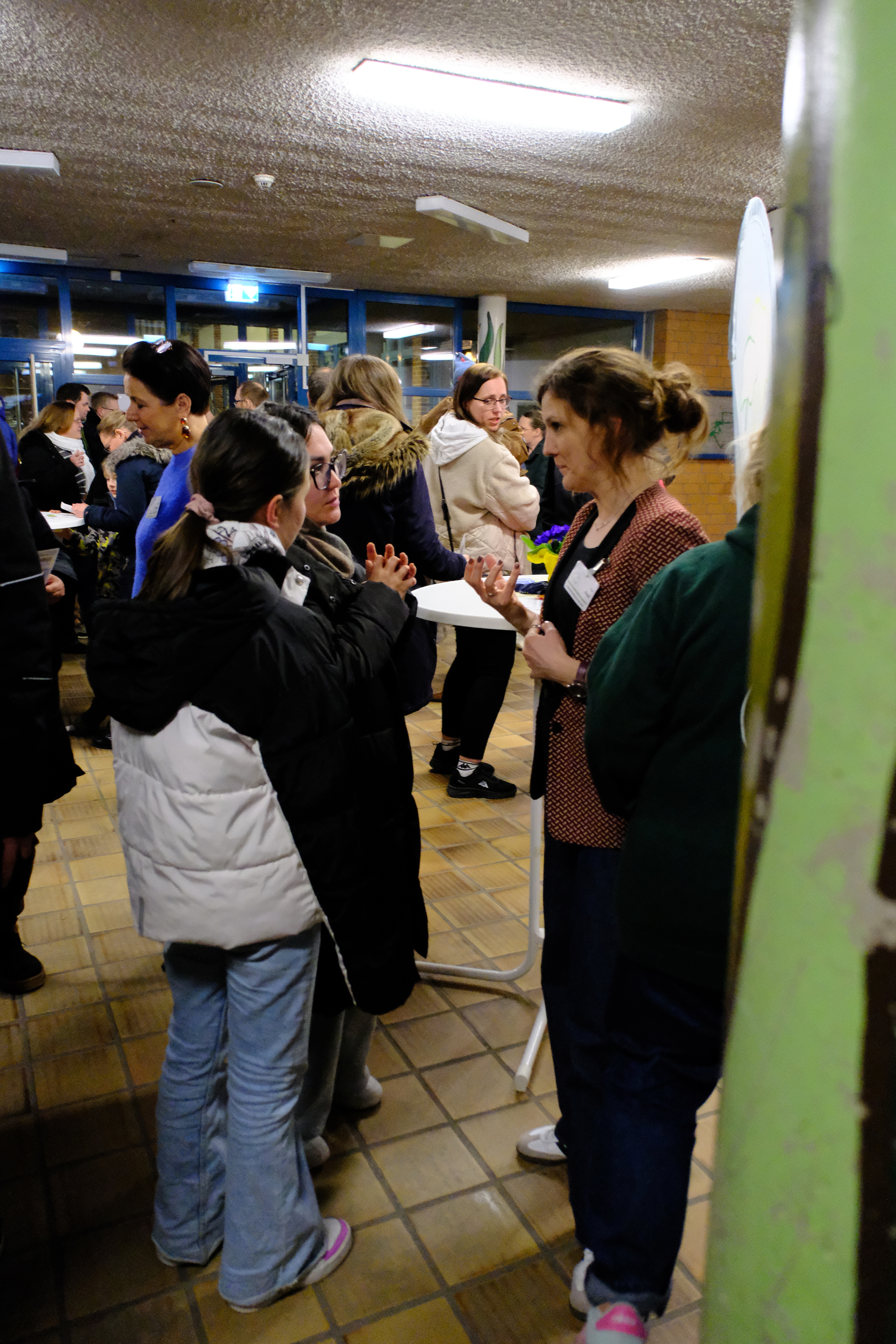Im Anschluss an den offiziellen Teil nutzten viele Eltern die Gelegenheit, sich im Foyer an Informationsständen und Stellwänden weiter zu informieren und mit unseren Kolleginnen und Kollegen ins Gespräch zu kommen. Besonders zu Themen wie Ganztag, Profilunterricht, zweite Fremdsprache oder Beratung entstand ein reger und wertvoller Austausch in angenehmer Atmosphäre.