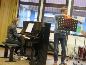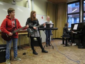 Die neue Schulband, bei der sowohl ein Cello als auch ein E-Bass vertreten ist, stellte sich bei einer offenen Probe vor.