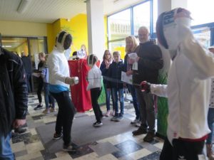 Des Weiteren gab es Eindrücke der zweiten Fremdsprachen beim Spanisch- und beim Latein-Workshop oder beim französischen Café. Teilnehmer der Fecht-AG zogen kämpfend über die Flure.