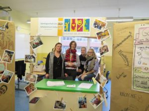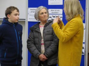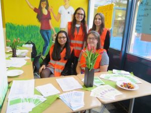 Neben den zahlreichen interessanten Workshops gab es z.B. im Café des Fördervereins in der Pausenhalle Gelegenheiten, um Lehrkräften und Gymnasiasten Fragen zu stellen.