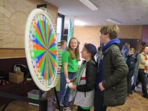 Beim Glücksrad der IG, der Initiativgruppe der Schülervertretung des Gymnasiums, konnte man fair gehandelte Schokolinsen gewinnen und im Atrium grillte sie Bratwürstchen.