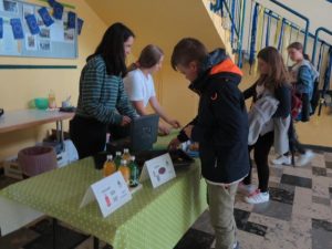 Am Mittwoch wurde in den Pausen ein FairTrade-Stand betrieben, bei dem man auch Waffeln kaufen konnte, die mit Lebensmittelfarbe in Europablau gefärbt waren.