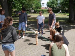 Zum ersten Mal ging es für die elf Mediatorinnen und Mediatoren des Gymnasiums Unter den Eichen Uetze in der Zeit vom 05.06-07.06.2019 mit Maike Holtmann und Stefan Manschke vom Mobbinginterventionsteam auf Fahrt in das nahe gelegene Anne-Frank-Haus in Oldau/Hambühren. Der erste Seminartag bestand darin, sich gegenseitig besser kennen zu lernen und die bereits ausgebildeten und die neu auszubildenden Mediatoren als eine Gruppe durch dynamische Spiele zusammenzuführen.