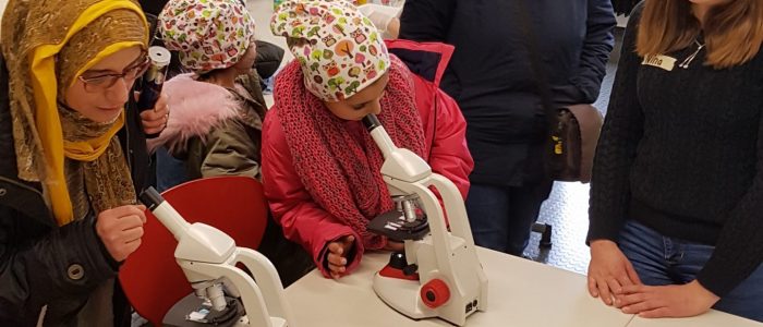 warteten am Tag der offenen Tür des Gymnasiums Unter den Eichen, dem 21. Februar 2020, auf die Besucher. Viele Gymnasiasten zeigten, wofür sie sich begeistern, sei es aus dem Ganztagsangebot Musical, Theater, Schulband, Fechten oder Forschen oder beim gesellschaftlichen Engagement der IG (Initiativgruppe der Schülervertretung), welche regelmäßig neben vielen anderen Aktionen einen Fairtade-Stand betreibt und Würstchen grillt. Die zukünftigen Klassenlehrer der fünften Klassen: Jasmin Wander, Eckhard Gieseler und Linda Bleck stellten sich den Fragen der interessierten Besucher. Die 5c mit ihrer Deutschlehrerin Odette Orlowski präsentierte wundervoll gestaltete Lesekisten zu Märchen und die 7b trug mit ihrem Deutschlehrer Volker Bracher Balladen vor. Die Französisch- und Musiklehrerin Friederike Sinagowitz sang mit Siebtklässlern „Aux Champs Elysées“ zu Beginn des Französisch-Schnupperunterrichts, in dem es Französischlehrerin Heidrun Molde mit Sechstklässlern gelang, die Viertklässler zu ihrem ersten Dialog auf Französisch zu motivieren. Auch in Latein und Spanisch standen Schüler und Lehrer den Besuchern bei der Bewältigung verschiedener Quizze hilfreich zur Seite. In Erdkunde konnte man sich auf eine Weltreise begeben und in Religion fernöstliche Religionen kennenlernen. In Geschichte konnte man Schätze ausgraben und interaktiv viel über das Reich der Pharaonen lernen. In Biologie wurde mikroskopiert, in Chemie experimentiert und in Physik ein Kaleidoskop gebastelt. Der Förderverein bot traditionell Kaffee und Kuchen an und lud zum Verweilen und miteinander ins Gespräch kommen ein. Der Höhepunkt waren die Auftritte verschiedener Breakdance- und Hip Hop-Gruppen des Tanzstudios S5 aus Hänigsen, welches auch Hip Hop im Profil der Bewegten Klasse anbietet.